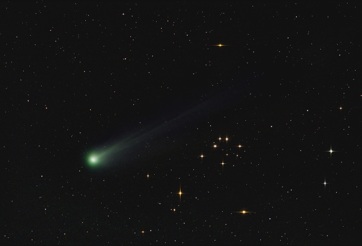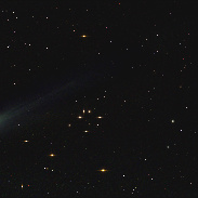 With the crescent moon half-way full, comet 12P was still visible one hour after sunset. However, it was more difficult to extract the long tail. This is a 40min (20 subs of 2 min each) stack.