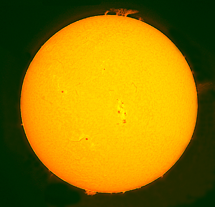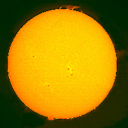 This image shows two strong flares and many prominences on the Sun. Solar maxima is here.