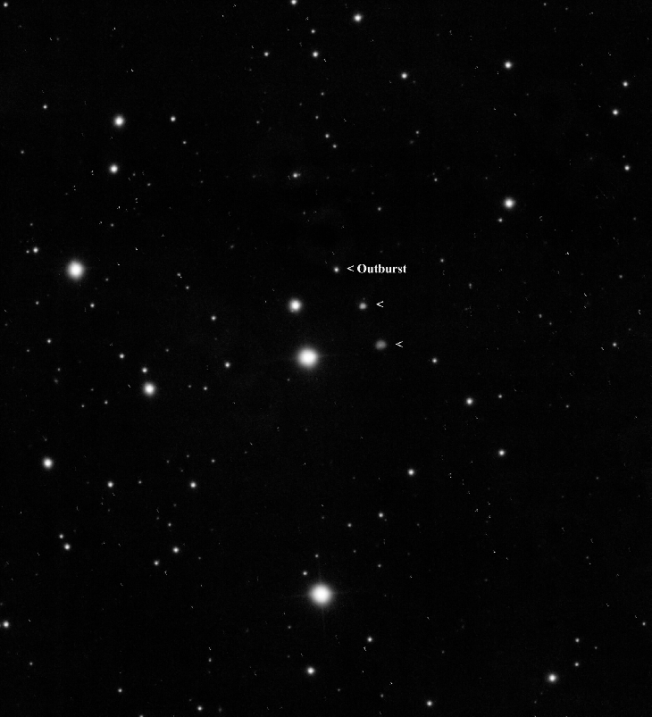 Comet 29P/Schwassmann-Wachmann has had another outburst, this image captures the peak shortly after the outburst and the following two days as the coma is beginning to emerge. A montage of three days captured with iTelescope T72.