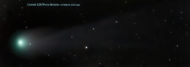 The photo is of "the Devil Comet" (12P/Pons-Brooks) stacked from 15 images (ave. 15" at ISO 11K) through a Celestron 9.25" SCT. When it was dark enough to see the comet thru the 10X60 binocs we had, it was low to the (Western) horizon. We had roughly 30 min. of observing time.