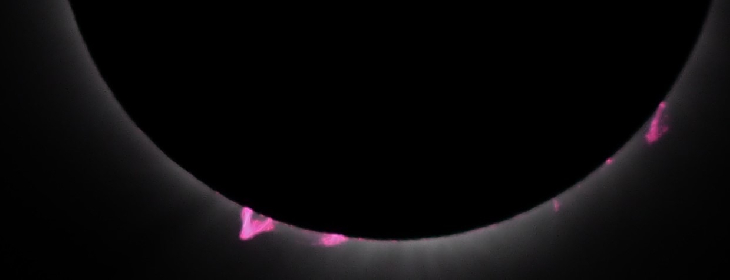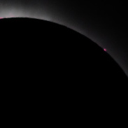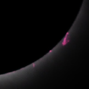 Amazing detail in several large prominences. AT72ED at prime focus; cropped and magnified--apologies for inevitable blur. Taken at Pittsburg, NH, which was cloudless w/light wind. I'll add a diamond ring and a coronal shot.