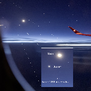 While flying back from the US (where I chased the eclipse), I saw the beautiful conjunction between Jupiter and a thin crescent Moon through the aircraft window.