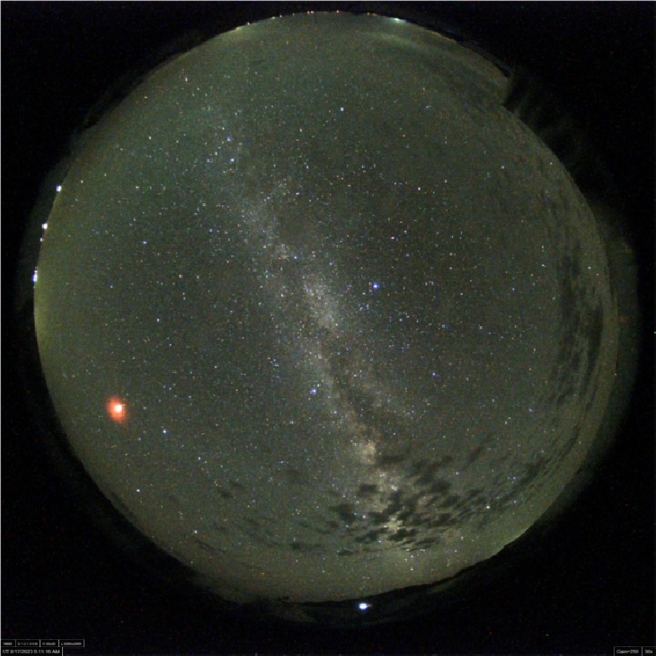 We have All-sky camera at Dark Sky New Mexico astronomy community. Began noticing "red Flashes" on May 19, 2023. Here is all-sky image from Aug. 16, 2023 at 23:12:03 MDT. Would like to triangulate if you have similar data.