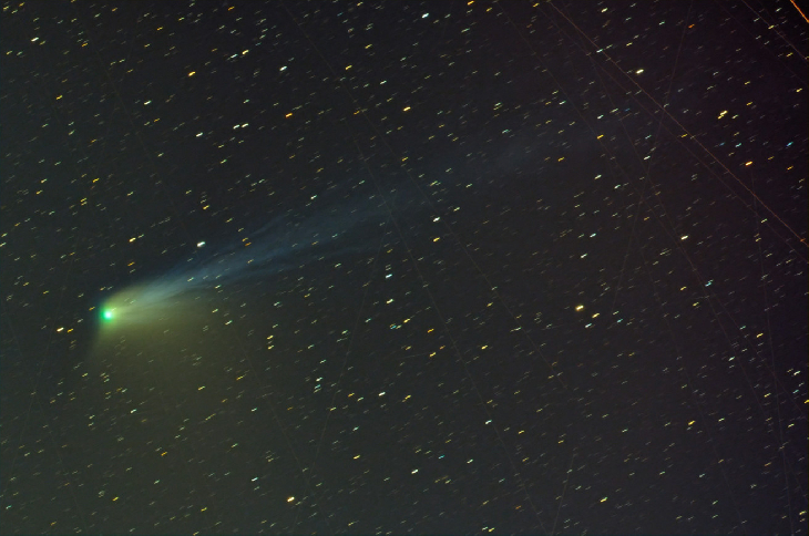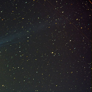 Unfortunately, the comet dived right into the light pollution dome of a nearby town. Captured with a DIY Riccardi-Honders and ZWO ASI 2600MC, 450mm focal length, 45 x 30sec exposures.