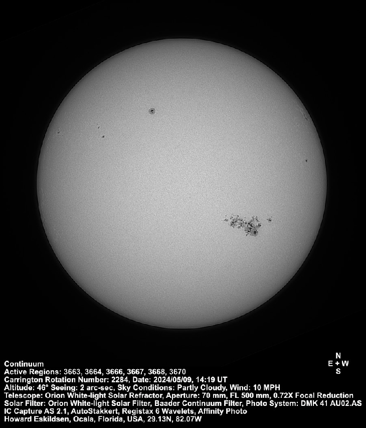 Today's whole disk solar images in continuum, Ca-K, and H-alpha. AR 3664 was visible through eclipse glasses once again today.