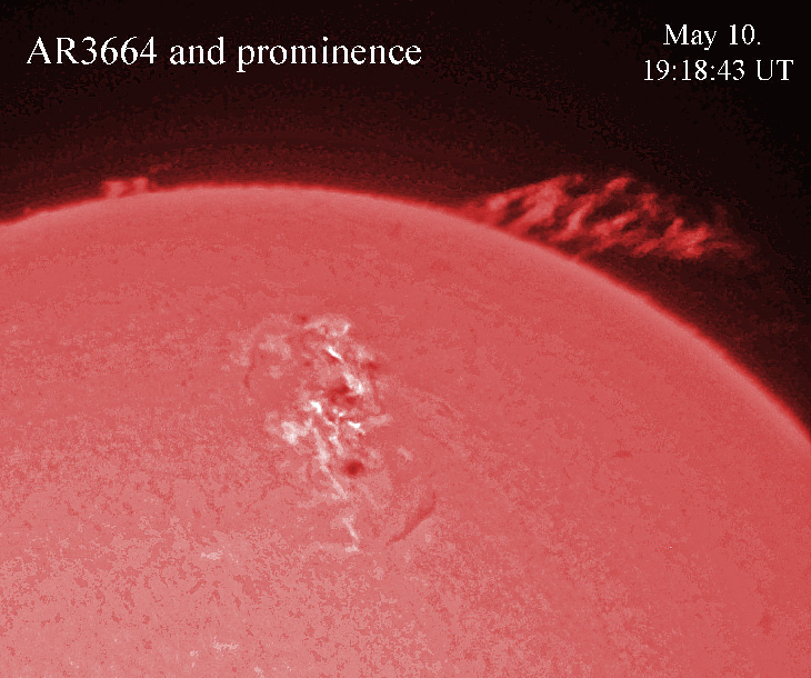 This large active region AR3664/3668 has produced numerous intense flares and released many CMEs. The long-lived "hedgerow" prominence appears to originate from behind the solar limb and seems to have no connection with this active region.