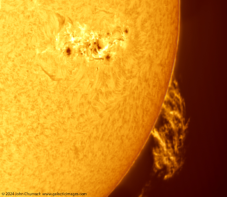 Massive Sunspot & Active Region #3664 with a very Large Prominences on the South western Edge of the Sun, I ran home at lunch time to image it, while it was still clear here in Ohio.