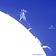 A couple of hours timelapse of a nice prominence group. Click on the photographer's website link below to watch the movie.