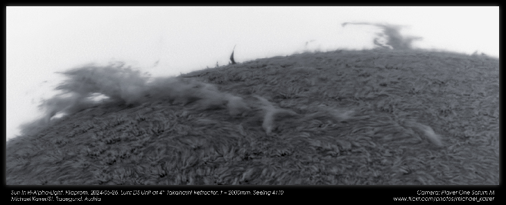 In the negative representation, the filaprom (prominence "merges" into a filament) appears almost three-dimensional.