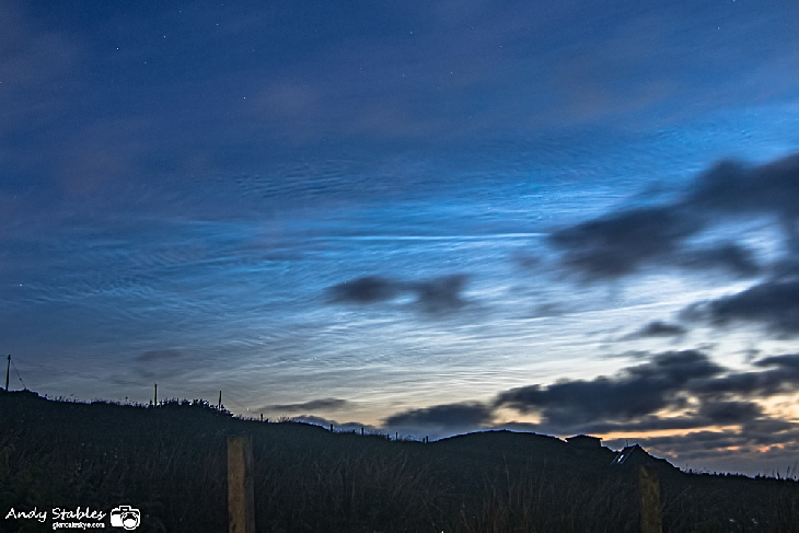 My first nocs of the season. Bright to the NNW between the tropospheric clouds. Can see them in gaps around to the NE.