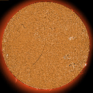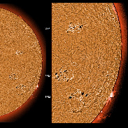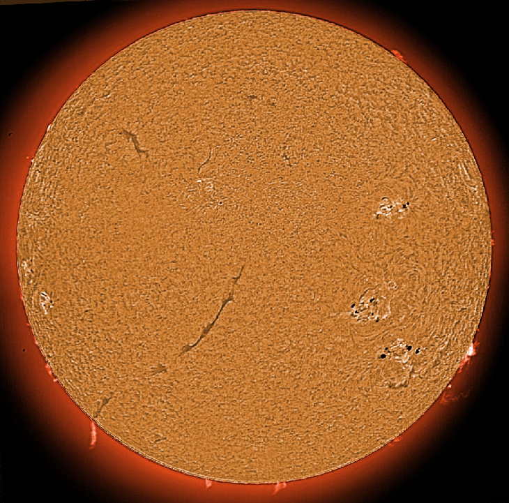 Very long filament covering half the disc culminating in a filaprom in the SE. Nice prominence in the SW also.