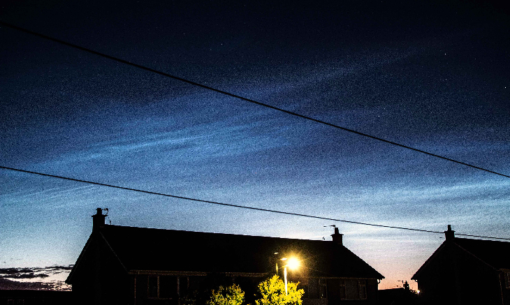 NLC developing from 23:46 UT and fading at 01:32 UT. Max. elevation 30 degrees.