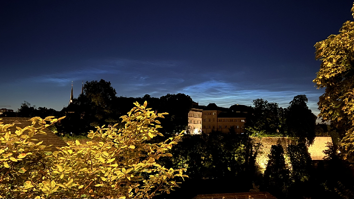 A very pretty display seen between 11pm and midnight low down over the beautiful city of Luxembourg.