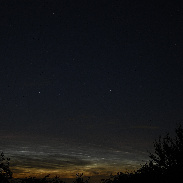 There was a sufficient break in the clouds between 12.30 am and 1.40 am to get a good view of the Noctilucent Clouds on the northern horizon.
