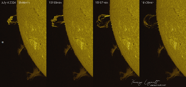The bright prominence exploded within minutes and I had the luck to capture several moments between clouds above Paris.