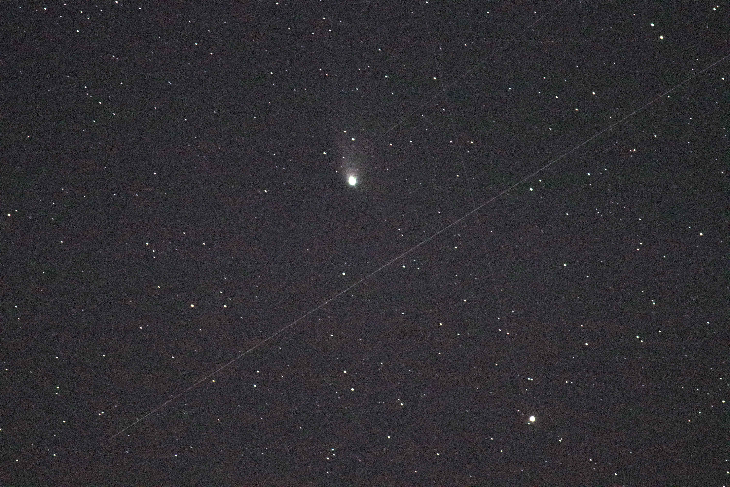 The comet was visible in 15 x 70 binoculars. The photo was taken using a 400mm Canon lens. The exposure was 30 seconds at f5.6 and ISO 6400. It was taken at 10:24 p.m. MST.