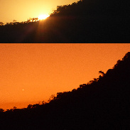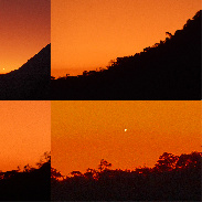 These pictures, taken between 5.07 and 5.52 pm on Friday 12th July, show that Venus had separated far enough from the Setting Sun to appear in volcanic sunset glow at almost the same location three quarters of an hour later. These are the first views of Venus after sunset in July 2024 to be obtained from my location on Murambi Heights in Mutare. Camera: Panasonic Lumix DMC-ZS40 in sunset mode.