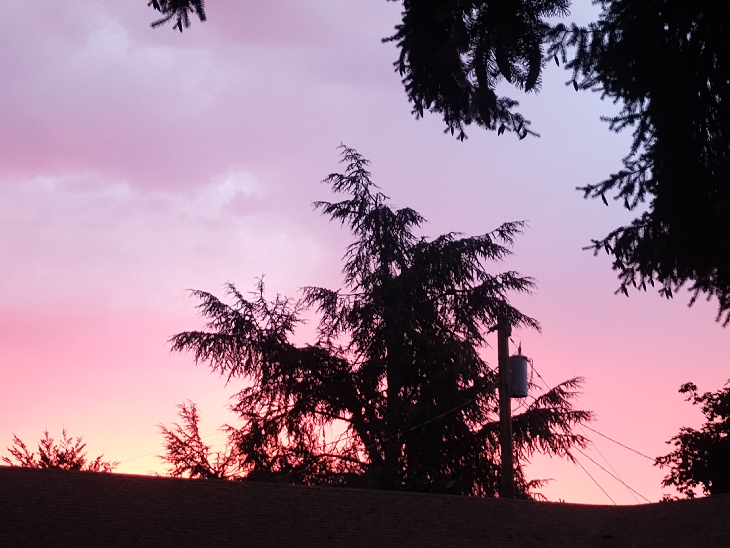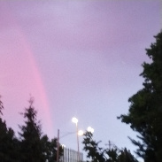 A rare storm blew in during the Oregon dry season yesterday. Pink rainbow and lightning