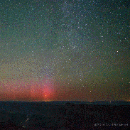 The aurora was not visible to the eye but the camera was able to capture very faint pillars close to the horizon.