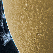 This is a two-panel overlay showing a nice solar prominence on August 23rd. The prominence and surface features were each captured using the best 20% of 2000 frames