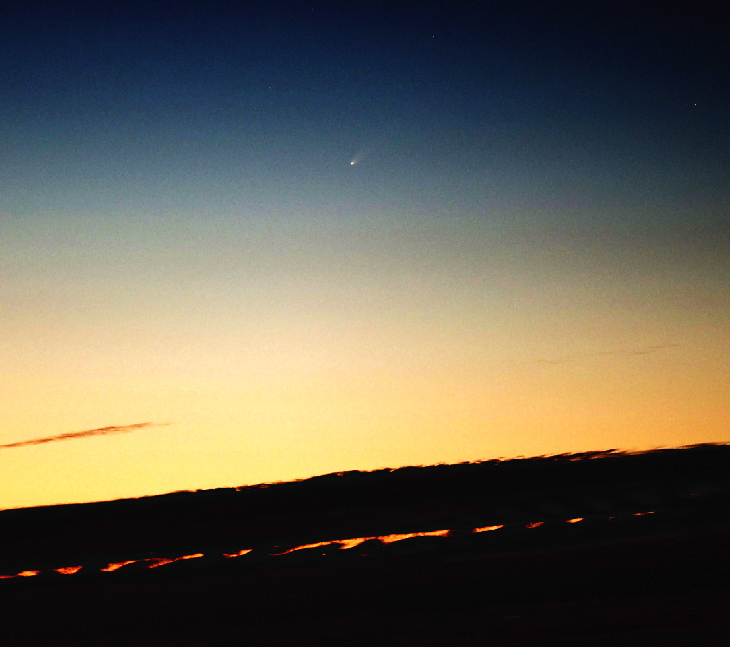 Great view of Comet Tsuchinshan-ATLAS from Cabreja Mountain in the middle of Gran Canaria Island. Canary Island (alt 1000m). Comet only a few degress over the horizon during the strong twillight . Canon R + 135mm f/2. ISO 1000 1"exp. Single shot