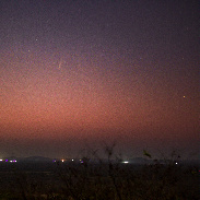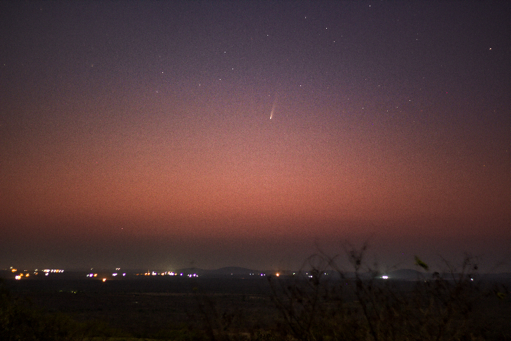 Note: Smoke and dust suspended in the atmosphere interfered with the capture. Also the lights of twilight and a 71% illuminated moon. But conditions are improving day by day and the outlook for the 27th (perihelion date) is good as the comet is expected to be brighter, higher in the sky and with greater solar enlargement.