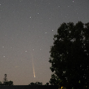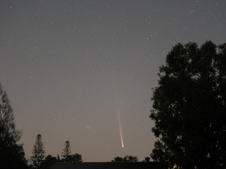 Clearly visible as a streak to the naked eye although hardly attention grabbing in the twilight. OM Digital Systems OM1 - Zuiko Pro 40-150 f/2.8 zoom lens - ISO3200 - 15 second exposures at each of 40 and 150 mm focal length.