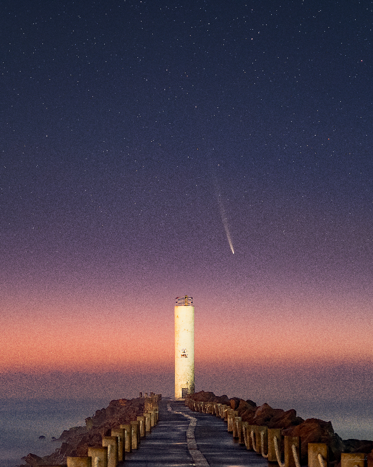 After about 14 days with lots of smoke from fires, rain, fog, and failed attempts. In the early hours of today (September 28, 2024), I managed to make my first official record of Comet A3 Tsuchinshan Atlas with the composition of the Molhe de Torres Lighthouse, in Rio Grande do Sul, Brazil. It was a mix of happiness and excitement to be able to see the comet with the naked eye and with ease!