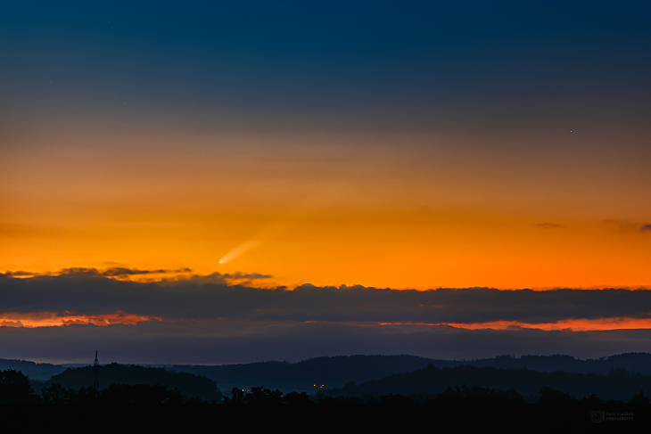 This morning I succeeded with photography of the Comet C/2023 A3 Tsuchinshan–ATLAS from the Czech Republic (50 degrees north) again. Comet brightens rapidly and its tail can be captured even against the bright dawn. This shot, taken near Velke Popovice, is a crop from 200mm telephoto lens shot, however with binoculars the comet was majestic too. Cannot wait for next days, this might be something truly big! Canon Ra, Tamron 70-200mm (200mm), f2.8, ISO 100, 25x1,6s; tracked on Vixen Polarie U.