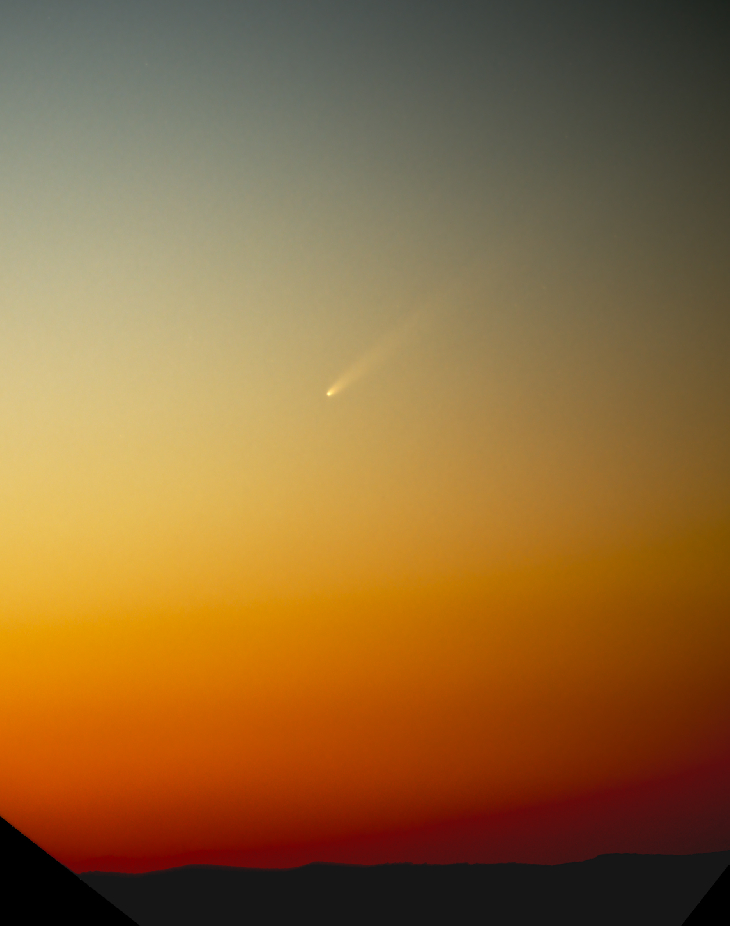 A 48 x 1 sec stack from Arches National Park, with 3 sets of curves adjustment in PhotoShop. Barely visible in 11x60 binoculars if you know exactly where to look, not visible to the naked eye on this morning. Tech: Canon 6D MkII, Tamron 70-200 F/2.8 set at 180mm, guided on Sky-Guider Pro. ISO 1600, 1 sec exposure.