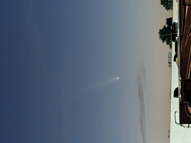 At about the same height from the horizon as Venus Comet C/2023 A3 (Tsuchinshan-ATLAS) shown brightly in the west with a beautiful tail!
