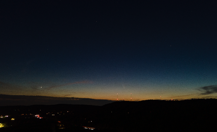 This is my first attempt of capturing the comet in the night sky. From DJI Mavic drone 4 sec exposure at 7:19pm EDT 10/12/24