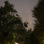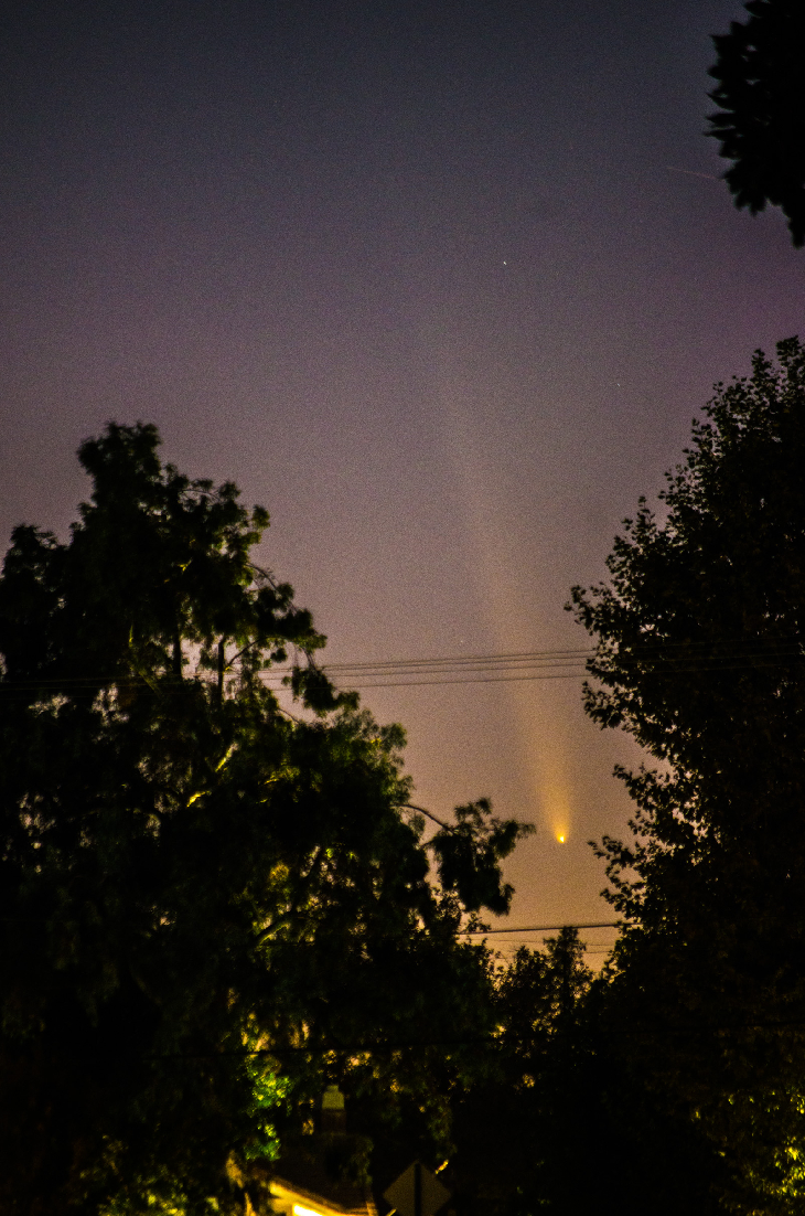 Comet Tsuchinshan-ATLAS appeared low on the horizon after sunset Saturday night. Quite the tail on that. Both images are the same, one is enhanced to better show the tail's length. It will be higher in the sky each night, but will also start dimming. I'm glad it survived it's trip around the sun. Heavenly wonders are beautiful.