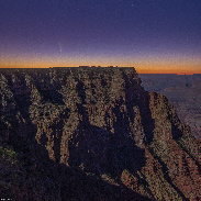 We stopped to watch the sun set over the grand canyon when I remembered that the comet might be visible with binoculars. At first I couldn't find a darn thing, but as the glow of the sun faded, it quickly become visible to the naked eye! What a treat, the past several "naked eye" comets have not been visible to me, let alone wide angle. This one takes the cake (with 10mm 30seconds iso1600 frosting)!