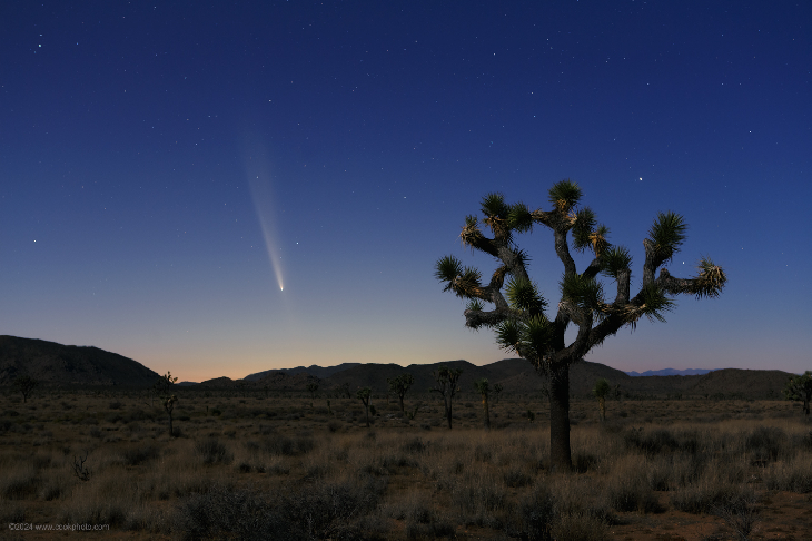 I had perfect conditions this evening in the high desert of California's Joshua Tree National Park. The comet was even more beautiful than the previous night. The anti-tail was even visible! Canon EOS 6D Mark II, EF 24-70mm f/2.8 L lens, ISO1600, 10 x 4 sec exposures.