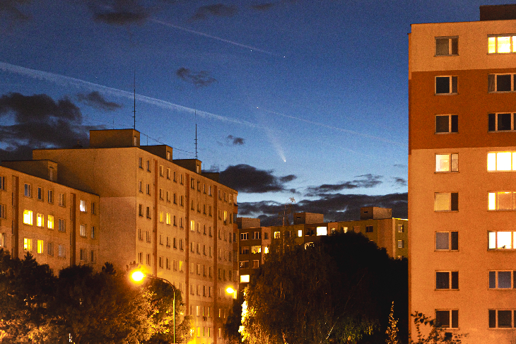 Comet C/2023 A3 (Tsuchinshan-ATLAS), photographed from Bratislava, despite the light pollution, the comet is very visible with a nice long tail