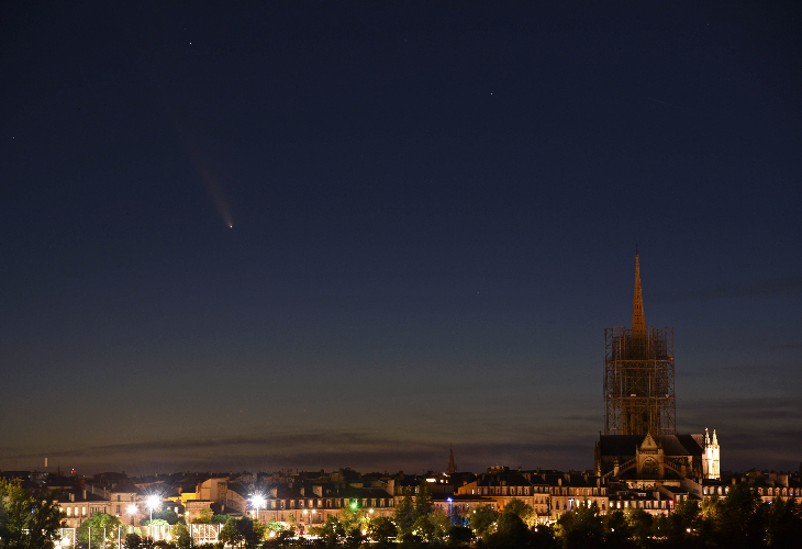 I went to find the clear sky further south in Bordeaux. The comet, almost invisible to the naked eye, appears on the photos.