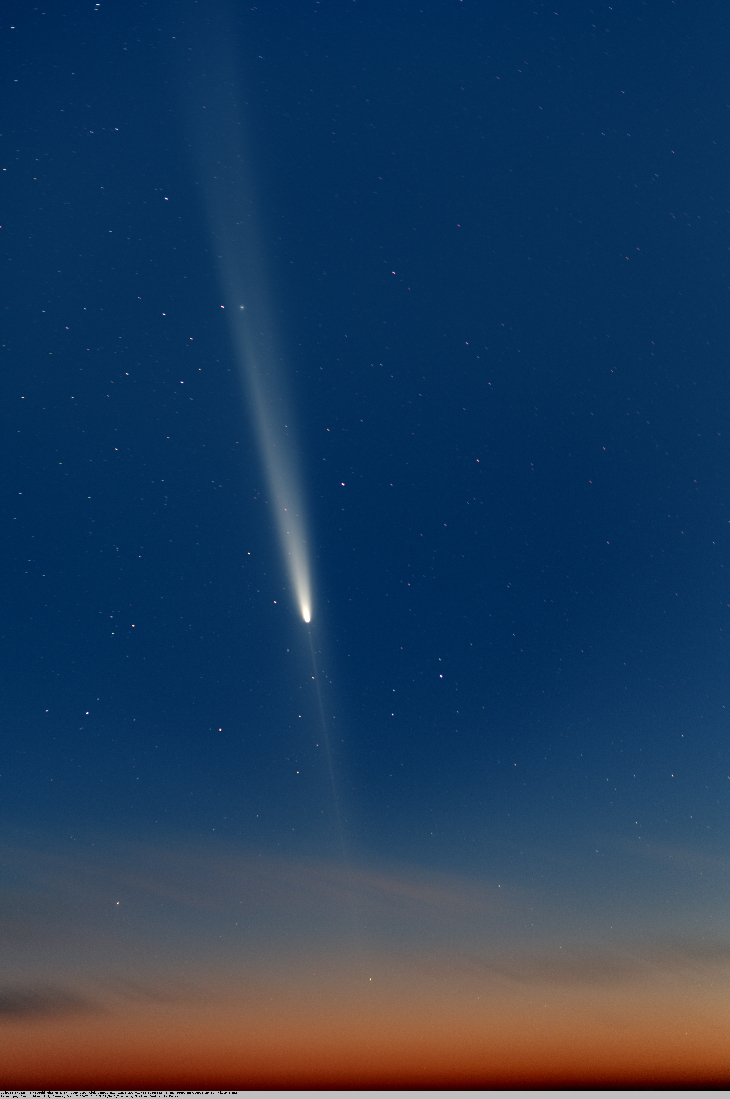 Amazing anti-tail stretching down to the horizon in this 20.5x13.7 deg FoV stacked image taken from 2100m on La Palma.