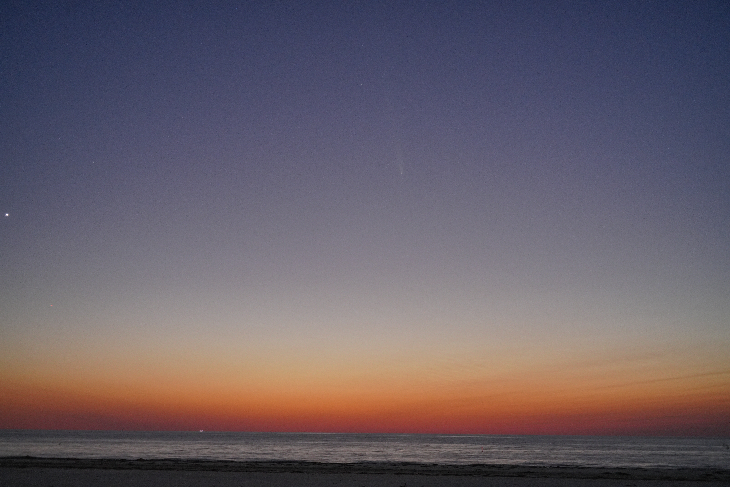 It was surreal on Clearwater Beach with the comet over the water with sunset still touching the ocean and a singer singing his heart out somewhere in a restaurant behind me. I forgot the adapter to my tripod, so I had to take all the shots by hand with my Sony A7R V. Going back tomorrow night!