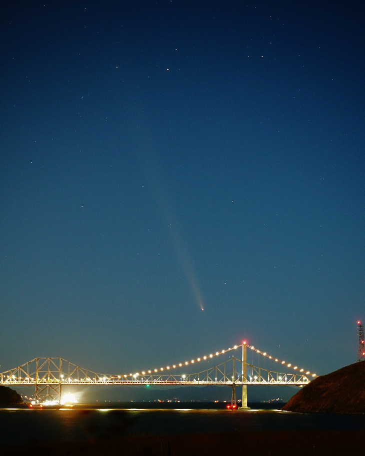 Comet over the Carquinez Bridge, SF Bay Area, California, USA.