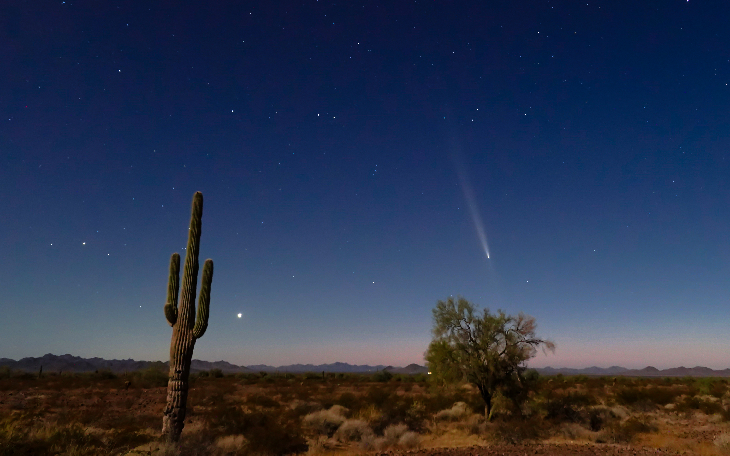 Out in Kofa National Wildlife Refuge in Southwestern Arizona Comet C/2023 A3 Tsuchinshan-ATLAS and its needle-like anti-tail was clearly visible to the naked eye. Am so glad it's finally not over 100 after dusk because desert heat makes a lot of noise when taking photos at night.