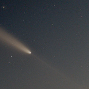 After three cloudy evenings I could see the comet at last. Despite bright moonlight it was a spectacular view, especially in wide-field binoculars.