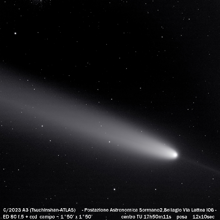 Comet C/2023 A3 with ED 80 f.5 + ccd information reported on the photo