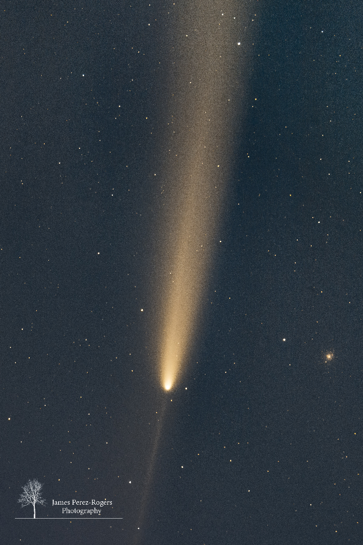 We haven't had many clear nights for the last week, but the skies finally cleared for a wonderful naked-eye viewing of Comet Atlas. I wanted a tracked shot at 350mm. I combined 15 single minute exposures with darks, flats, and bias frames to create this close perspective of the comet nucleus and its tails, including the anti-tail.
