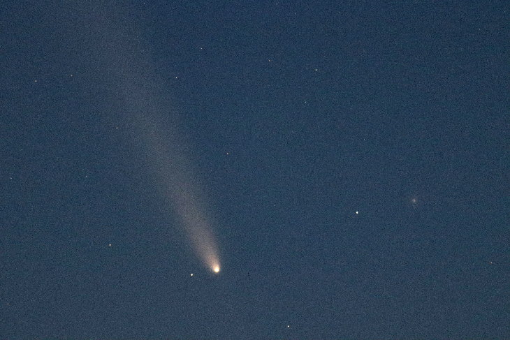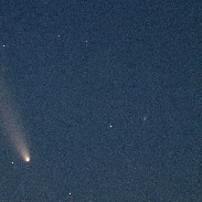 Taken on the East edge of the Snake River Plain using a 400mm lens on a Canon EOS SL2 camera riding on a Byers CamTrak. The exposure was for 5 seconds at f/5.6. The comet was hard to see due to a bright moon.