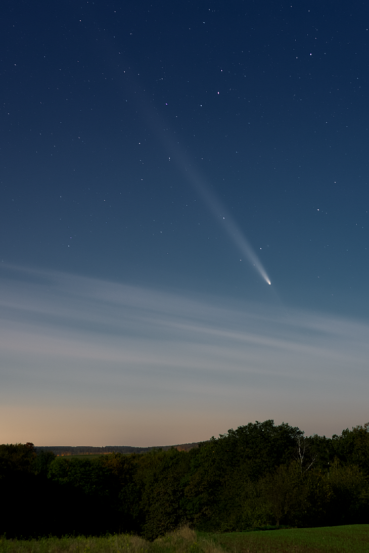 Yesterday evening I saw the impressive comet C/2023 A3 Tsuchinshan-ATLAS for the first time! Despite the bright moonlight, it was still easy to see with the naked eye using slightly indirect view. Even the tail shimmers through the cirrus clouds, which fortunately always kept a good distance from the comet's head...