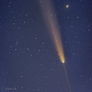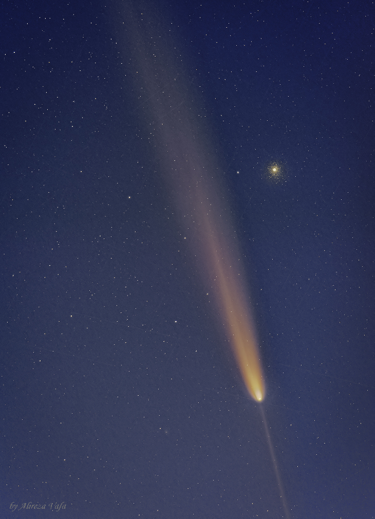 On the evening of October 15th, the sky was a breathtaking sight as Comet Tsuchinshan Atlas lit up the dusk. Its bright tail shimmered under the soft glow of the moon, creating a beautiful contrast against the deepening twilight. Nearby, the M5 globular star cluster sparkled like a cluster of tiny diamonds, adding to the magic of the scene. Just a degree away, the faint Comet 13/P Olbers could be seen, reminding us of the many wonders in our universe!