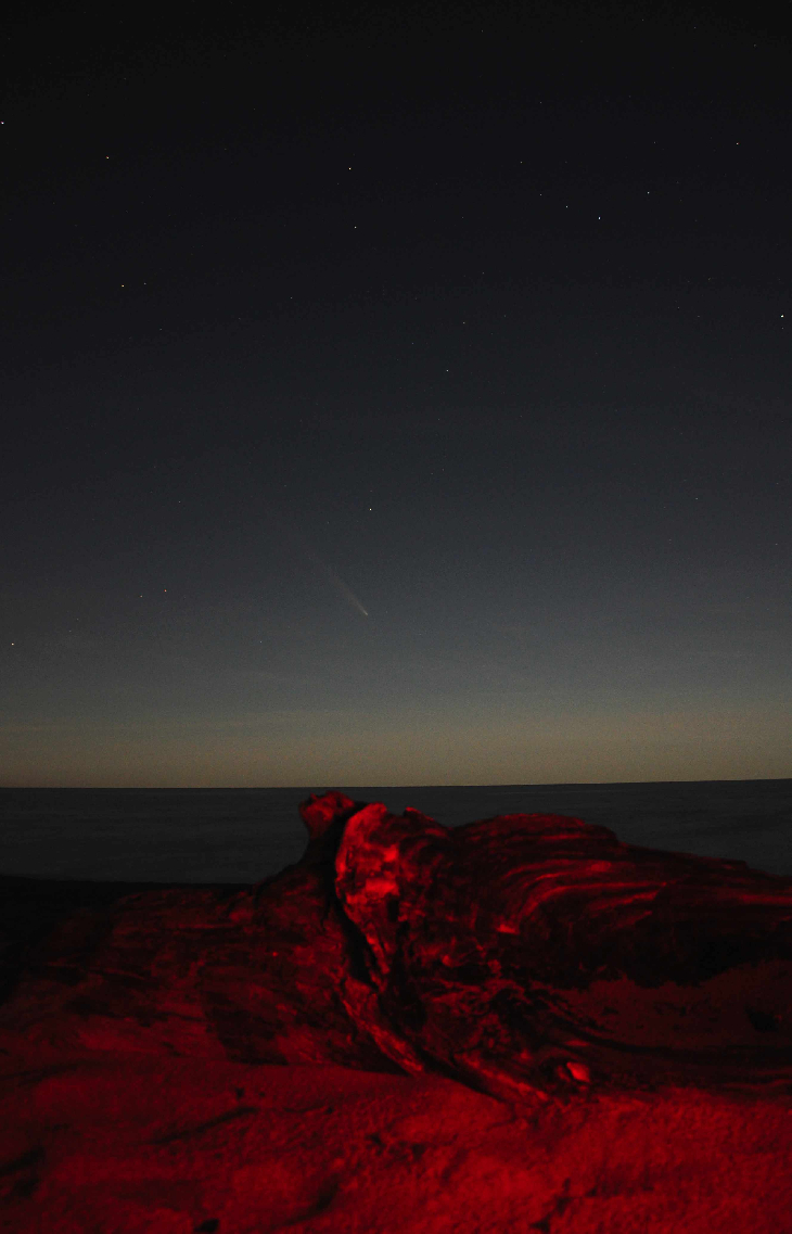 The comet (Comet Tsuchinshan-ATLAS A3) was very well visible in the clear evening sky at Saulkrasti beach. At first, I had to look, but when I put on the glasses, I could immediately see the nucleus and the gigantic tail. The sea is a clear sky and even the autumn chill did not disturb.
