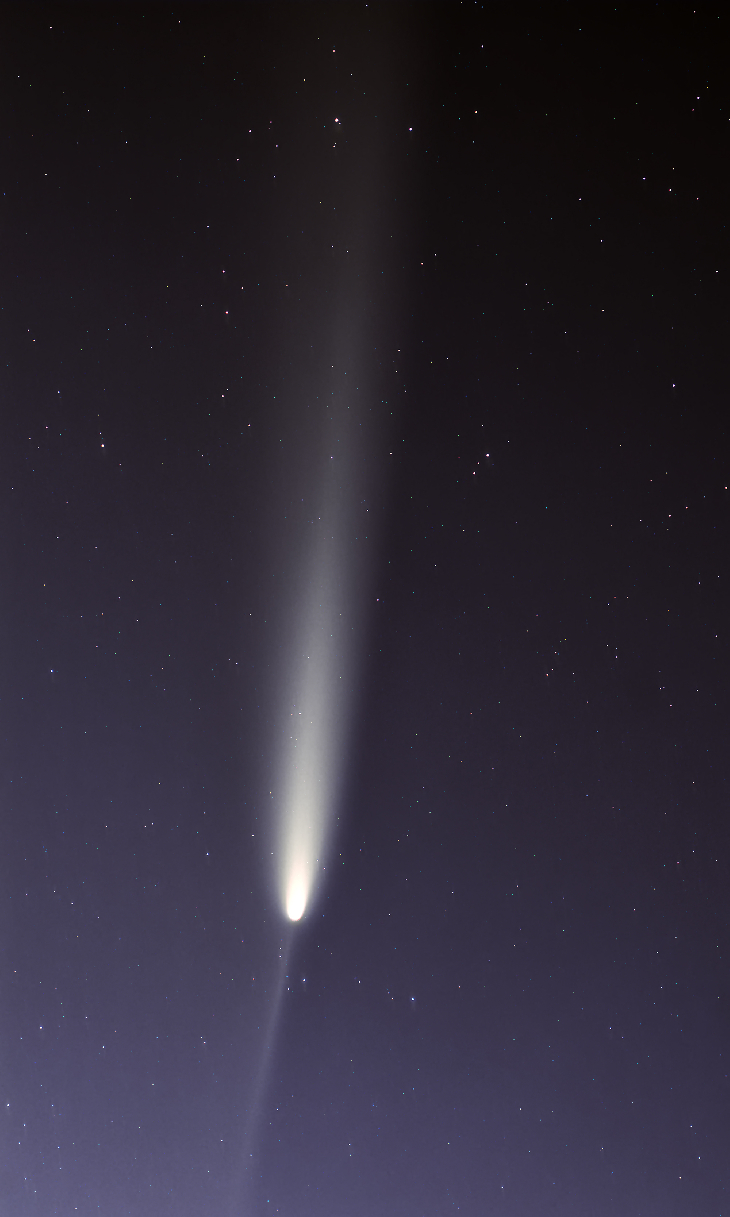 The comet continues to put on quite a show despite bright moonlight. The tail stretches 10-15 degrees and I am anxious to see how it appears once the moon is out the way next week. The current magnitude appears to be about +3. This image is a stack of 45 thirty-second exposures using a Nikon D3300 (ISO 800) and a Redcat 51.