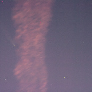 Finally a clear night to get a better view of the comet! Pentax K10D, 300mm, 400 ASA, 20s exposure.